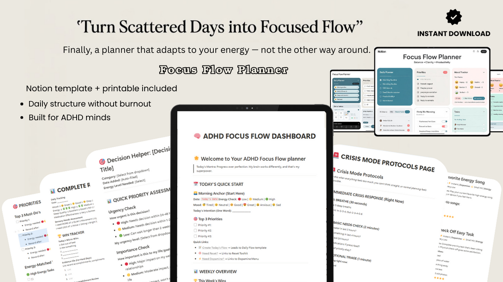 ADHD Focus Flow Planner (Notion Template + Printable)